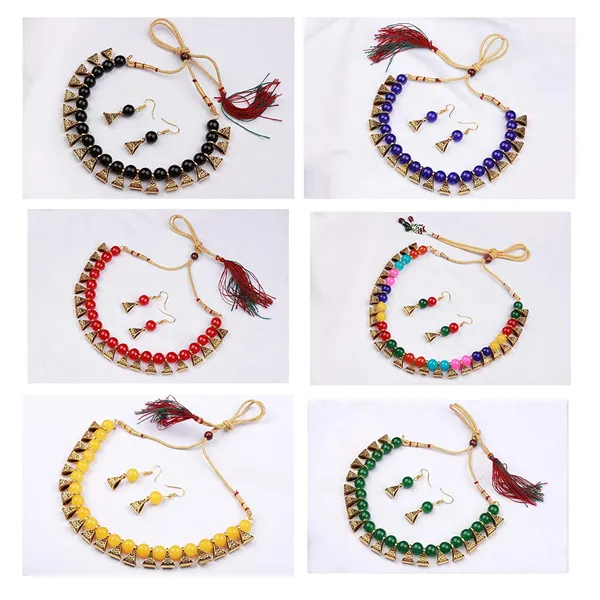 Set Of 6 (Rugby Mb) Combo Of 6 German Oxidized And Onyx Beaded Necklace Set..More
