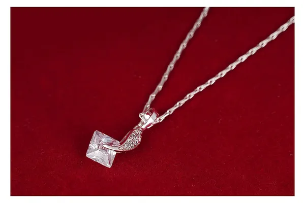 Silver Classic Silver Plated Square Diamond Pendant With Chains Office And ..More