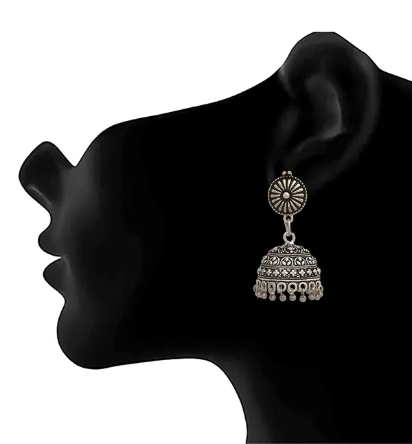 JFL -Traditional Ethnic Handmade German Silver Plated Oxidised Floral Designer Jhumki Earring