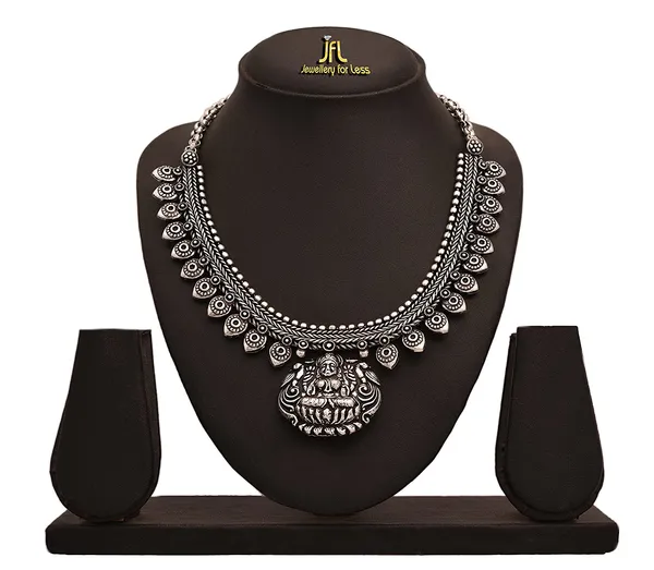 Silver Handmade Temple Goddess Laxmi German Silver Plated Necklace Set