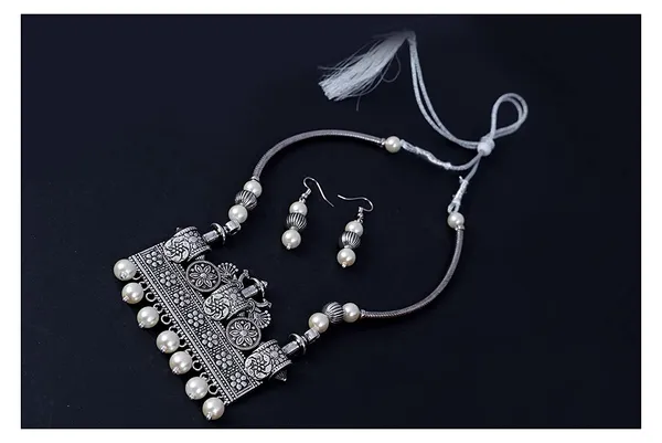 Silver Plated Silver Plated Meenakari Peacock Design Pendant Beaded Necklac..More