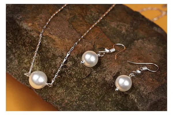 Silver Plated Single Moti Pendant With Chain And Earrings