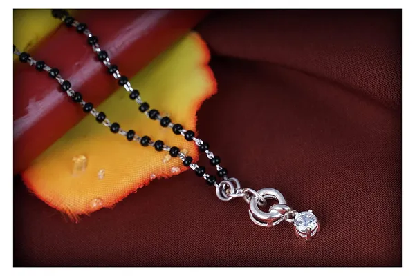 Silver Silver Plated American Diamond Studded Pendant Mangalsutra