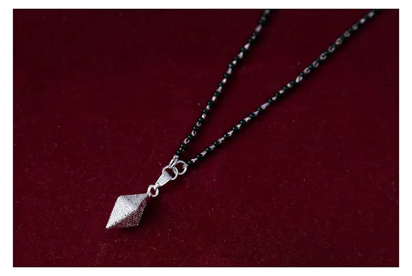 Silver Silver Plated Quartz Pyramid Pendant Mangalsutra