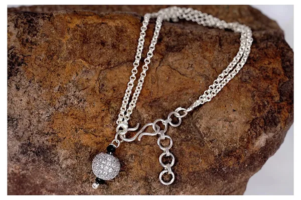 Silver Silver Plated Small Ball Cz American Diamond Pendant With Adjustable..More