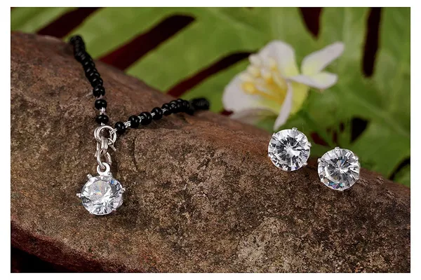 Silver Silver Plated Solitaire Cz Diamond Mangalsutra With Earrings