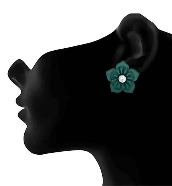 Stylish Fancy Floral Solitaire Cz American Diamond Green Matt Rubber Coated..More