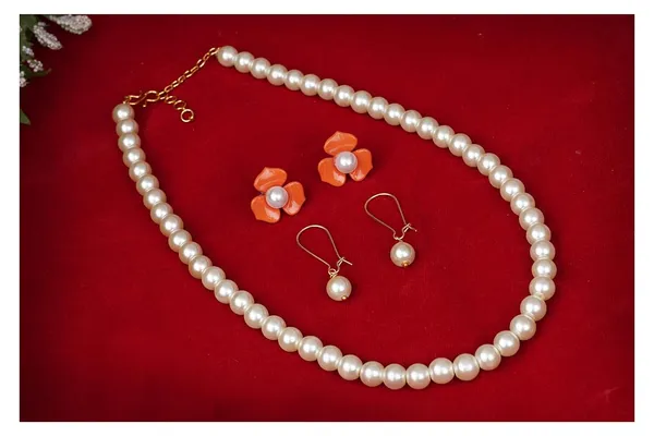 Stylish Imitation Pearl 8Mm Strand Necklace Moti Mala Jewellery Set With Co..More