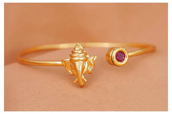 Stylish One Gram Gold Plated Ganesh Design Delicate Adjustable Kada With Re..More