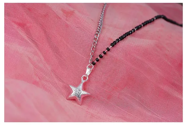 Stylish Silver Plated Designer Star Shape Pendant One Side Chain Mangalsutr..More