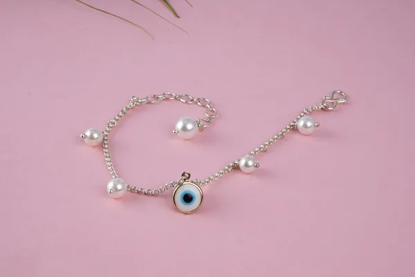 Stylish Silver Plated Evil Eye & Japanese Pearl Danglers Bracelet For Women..More