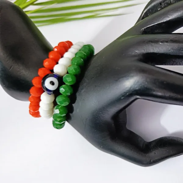 Tiranga/Tricolour/National Flag Bracelet Set With Evil Eye Handmade Fashion..More