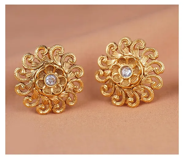 Traditional Designer Gold Plated Floral White Stone Studs Earring For Women..More