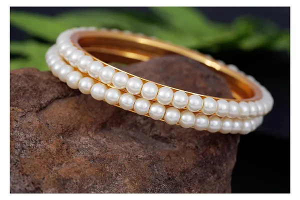 Traditional Ethnic 1 G Gold Plated Pearl Designer Bangle Set For Women
