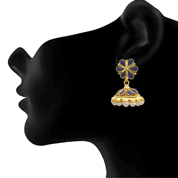 Traditional Ethnic One Gram Gold Plated Blue Stone & Pearls Designer Jhumka..More