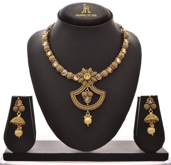 Traditional Ethnic One Gram Gold Plated Champagne Cz American Diamonds Desi..More