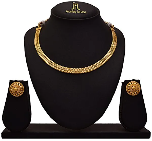 Traditional Ethnic One Gram Gold Plated Designer Patta Necklace Set with St..More