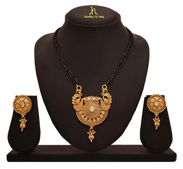 JFL -JFL -Traditional Ethnic One Gram Gold Plated Diamond & Dual Peacock Designer Mangalsutra with Double Black Beaded Chain for Women..