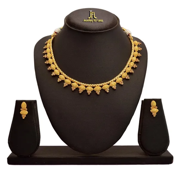 JFL - Traditional Ethnic One Gram Gold Plated Diamond Designer Necklace Set with Earrings for Women & Girls.