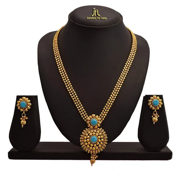 Traditional Ethnic One Gram Gold Plated Stones Designer Necklace Set For Wo..More