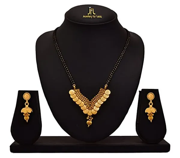 JFL -Traditional Ethnic One Gram Gold Plated Temple Laxmi Coin Designer Mangalsutra Set for Women.