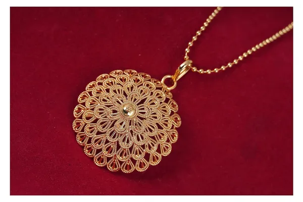 Traditional Gold Plated Flower Pattern Pendant With Ball Chain For Women & ..More