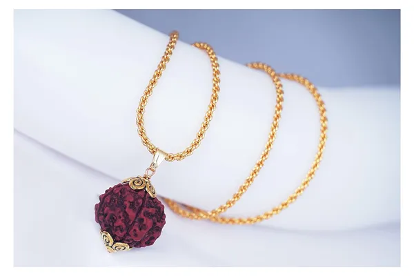 Traditional Gold Plated Panch Mukhi Rudraksha Pendant With Chain For Men An..More