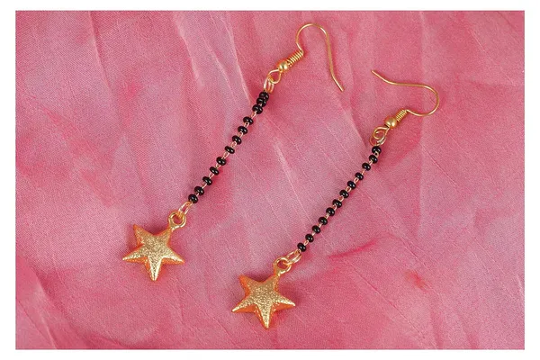 Traditional Gold Plated Star Shape Black Bead Chain Mangalsutra Earring For..More