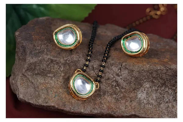 Traditional One Gram Gold Plated Kundan Mangalsutra Designer Pendant With K..More