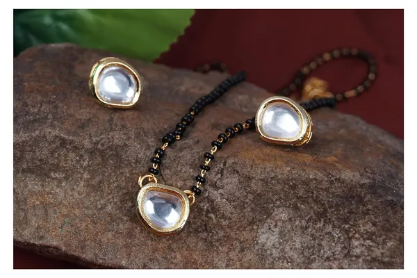 Traditional One Gram Gold Plated Kundan Mangalsutra Designer Pendant With K..More