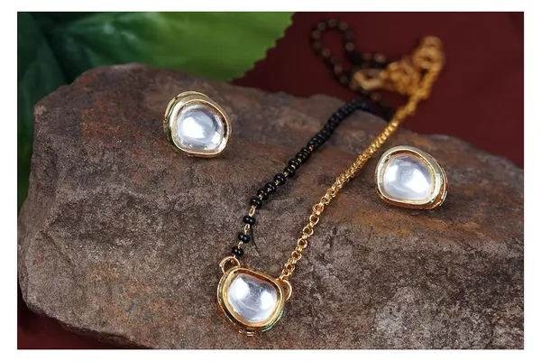 Traditional One Gram Gold Plated Kundan One Side Chain Mangalsutra Designer..More