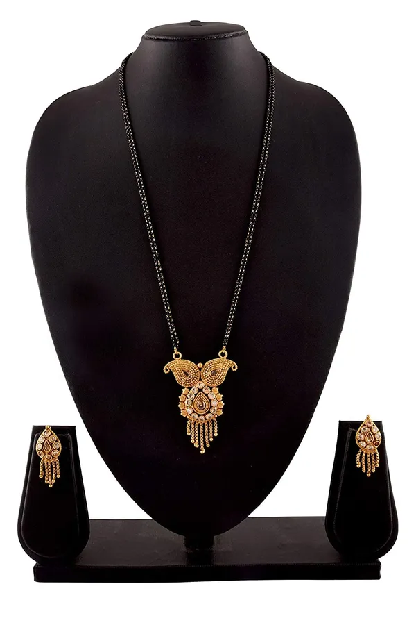 Traditional One Gram Gold Plated Stone Studded Drop Shape Pendant Double Ch..More