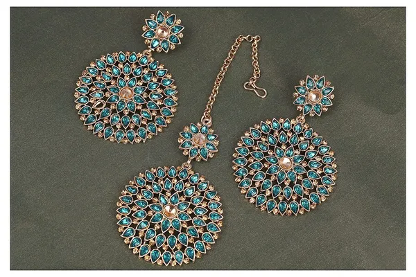 JFL - Jewellery for Less Gold Plated Stone and Diamond Studded Maang Tikka with Dangler Earrings Women love jewellery specially Fashions jewellery adore a women You can wear this Maang Tikka and Earrings on all occasion This beautiful piece of jewellery will enhance your beauty and compliment you Make your moment memorable with this high quality fashion earrings This Maang Tikka and Earrings women’s wear on like ring ceremony, wedding and any traditional festive time, daily wear, office wear This pretty Maang Tikka and Earring pair makes your look impressive for any occasion It will make your moment memorable with this range This designed Maang Tikka and Earrings will go well matching With Any Attire Like dress, saree This Earrings will definitely be a treasured inclusion in every woman's jewellery collection new range of fashion Maang Tikka and earrings - Designer, Classy, Charming, Elegant, Appealing, Affordable, Casual as well as party wear, Pocket-friendly, Superb quality, High quality plating, Skin friendly, Non-allergic, Attractive, Mesmerising, etc