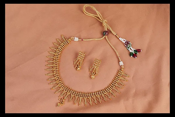 Trending Gold Gold Plated Unique Drop Shape Design Necklace Set With Adjust..More