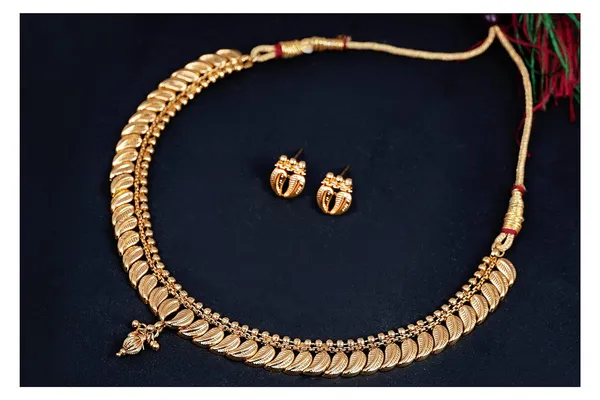 Trending One Gram Gold Plated Traditional Leaf Design Necklace With Earring..More