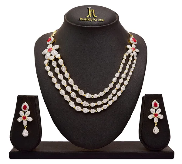 Trendy 1 Gm Gold Plated Cz Austrian Diamond Necklace Set With Earrings