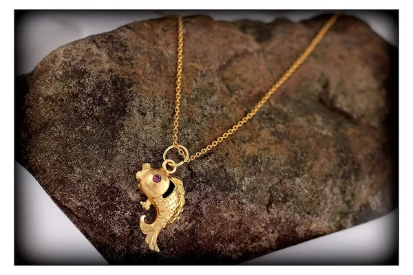 Trendy Gold Plated Cz American Diamond Fish Design Pendant And Chain