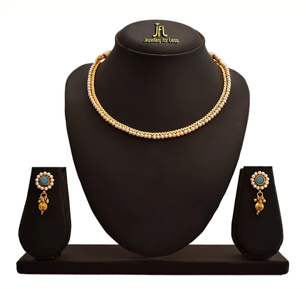 Turquoise Blue 1 Gm Gold Plated Pearls Necklace Set With Earring