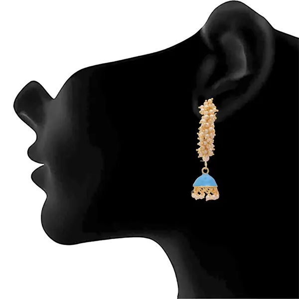 Turquoise Blue And 1 Gm Gold Plated White Pearls Purple Meenakari Jhumka Ba..More