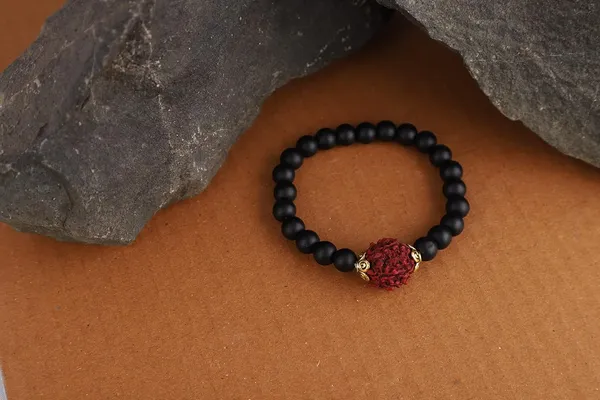 Valentine's Special Matte Finish Black Onyx Stone With Panch Mukhi Rudraksh..More