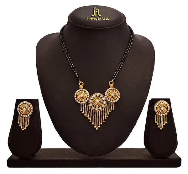 JFL -Traditional Ethnic One Gram Gold Plated Austrian Diamond & Pearls Designer Mangalsutra Set with Earring