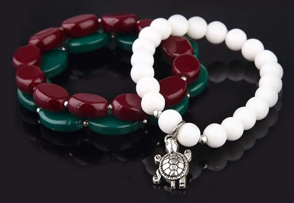 JFL collection - White, Green, Wine Onyx three Bracelets with Turtle Charm for Good Health and Good Luck The hard shell of the turtle represents perseverance and protection JFL collection nature inspired jewelry, natural stone bracelet natural stone jewelry inspirational jewelry, yoga inspired jewelry, artisan jewelry and energy gemstone jewelry Every product is handmade with love and positive intention These designs are a wonderful way to be uplifted, inspired and reminded of our daily intentionsMatte onyx properties - onyx absorbs and transforms negative energy,and helps to prevent and drain of personal energy it also attracts positive energy* Stretchable Elastic Handmade Combination Bracelet * Natural Healing Stone for Reiki Healing, Crystal Healing, Numerology, Tarot, Astrology & Feng Shui * Original and Natural imatation Healing Stone / Crystal - small holes, crack marks on the surface or inside the stones are often visible* Material : Natural Healing Stones See Images & Product Description For Healing Properties /Advantages