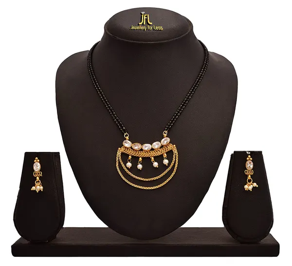 JFL -Traditional Ethnic One Gram Gold Plated Diamond & Pearl Designer Mangalsutra Sets