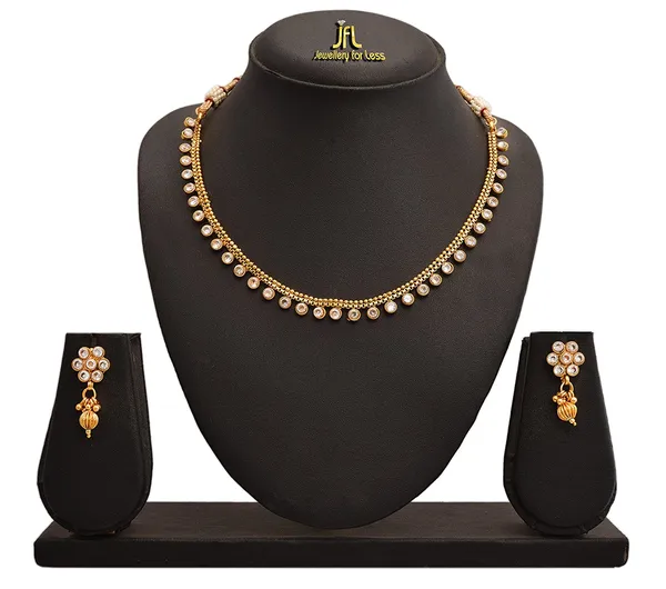 JFL -Traditional Ethnic One Gram Gold Plated Diamond Designer Necklace Set