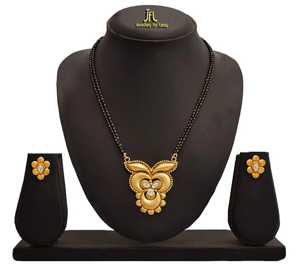JFL -Traditional Ethnic One Gram Gold Plated Mangalsutra Set With Black Beaded Chain