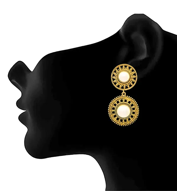 JFL -Traditional Ethnic One Gram Gold Plated Pearl Designer Gorgeous Earring