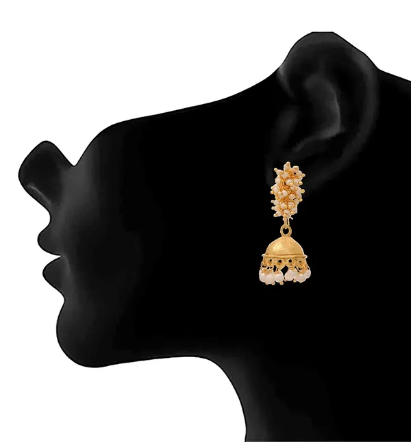White 1Gm Gold Plated White Pearls Jhumka Bali Earrings