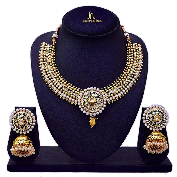 White And 1 G Gold Plated Polki And Austrian Diamond White Pearl Necklace S..More