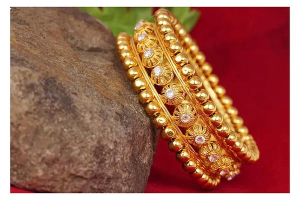 White Ethnic One Gram Gold Plated Cz American Diamond Designer Kada For Wom..More