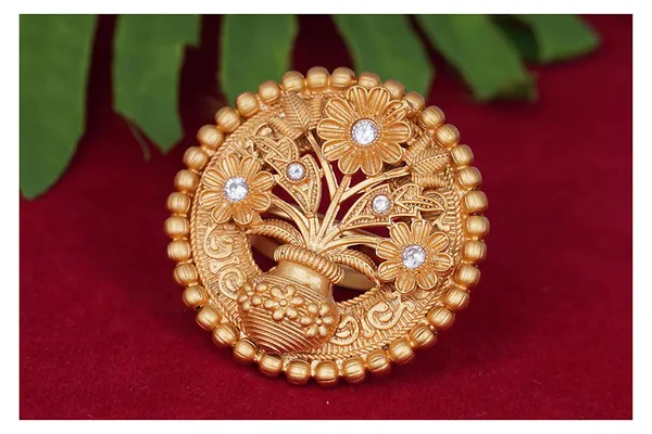 White Fancy Matte Gold Plated Flower Pot Design With White St1 Studded Adju..More